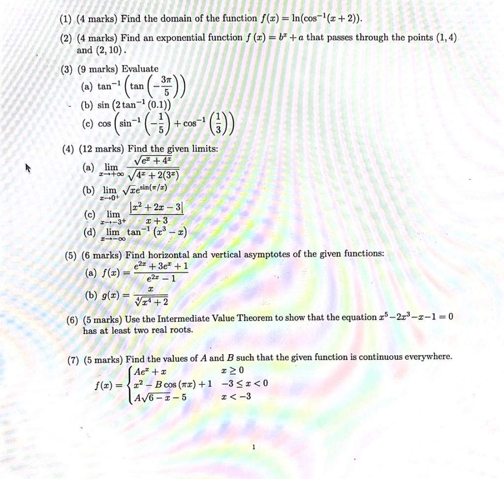 Solved 1 4 Marks Find The Domain Of The Function F X Chegg Com